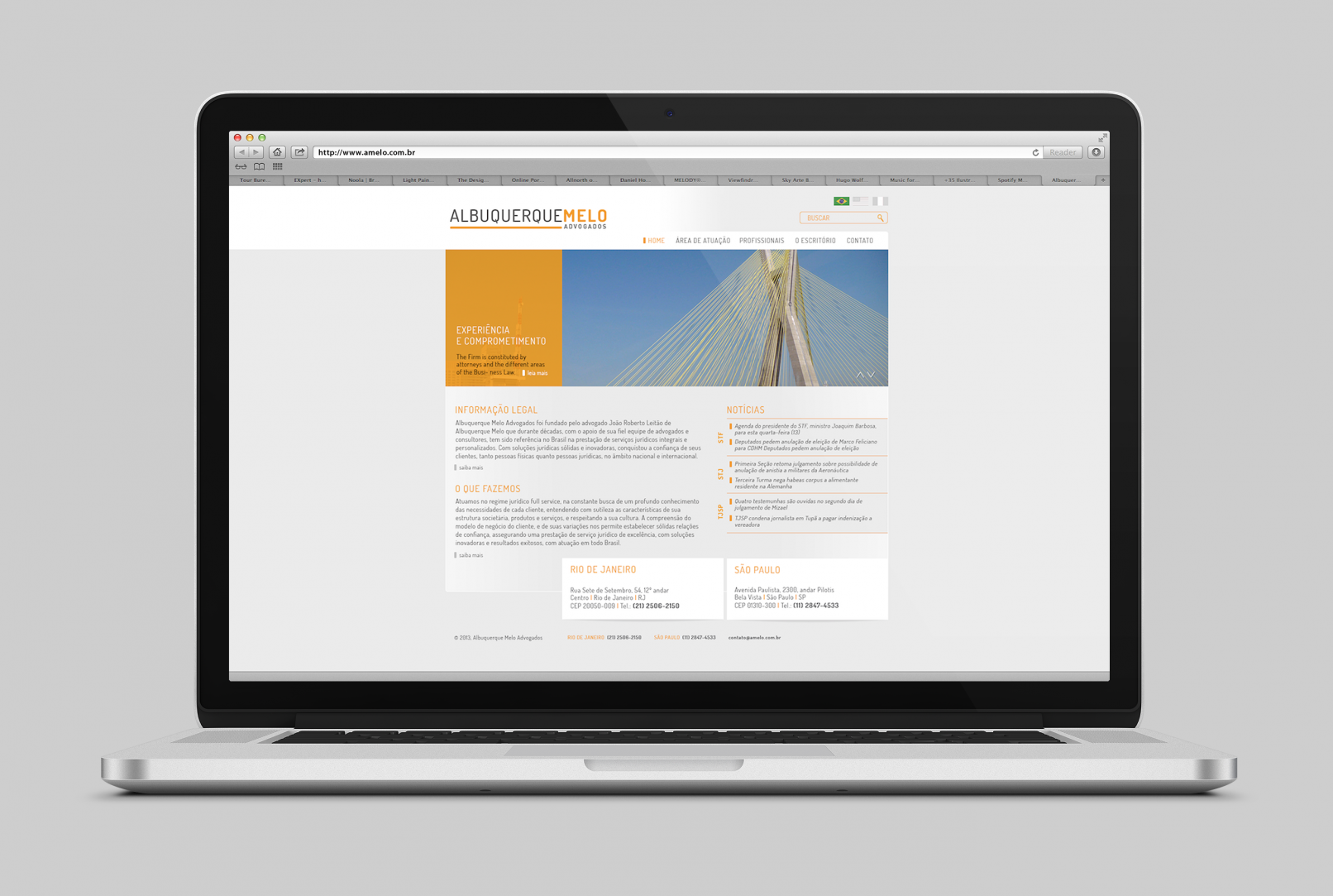 Identidade Visual, Site, e Itens de papelaria desenvolvidos para o escritório de advocacia Albuquerque Melo.