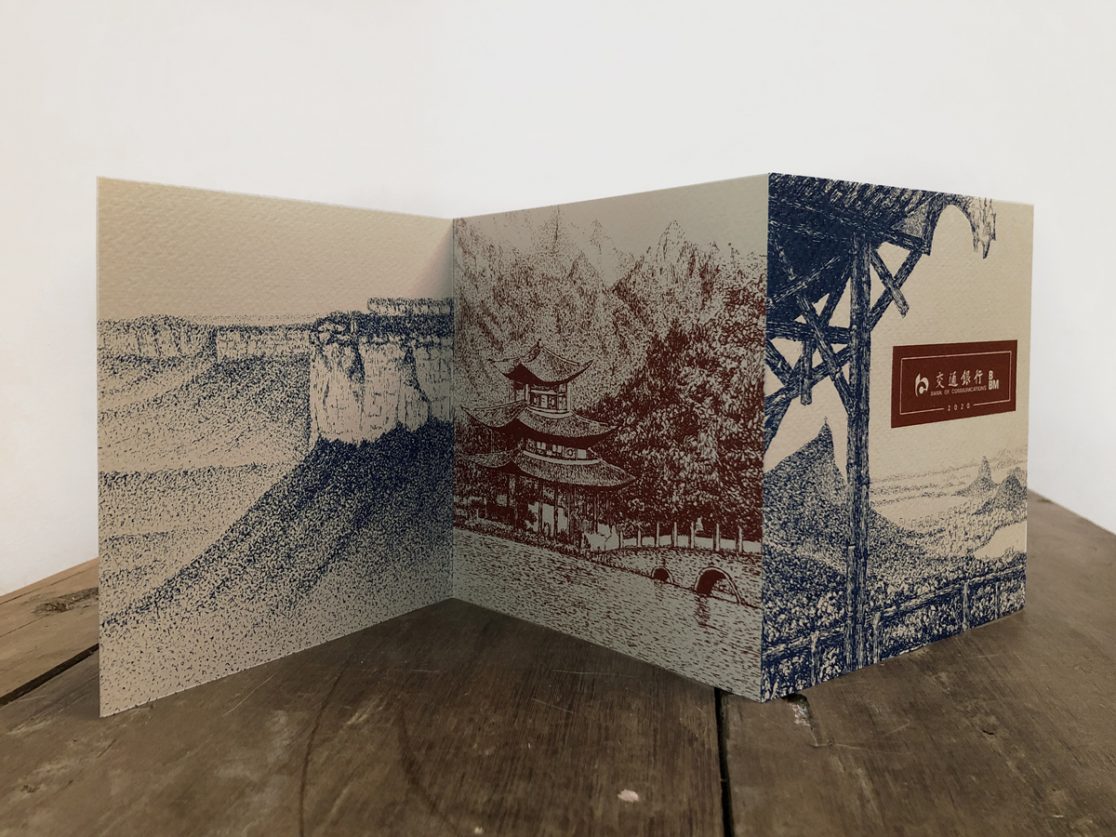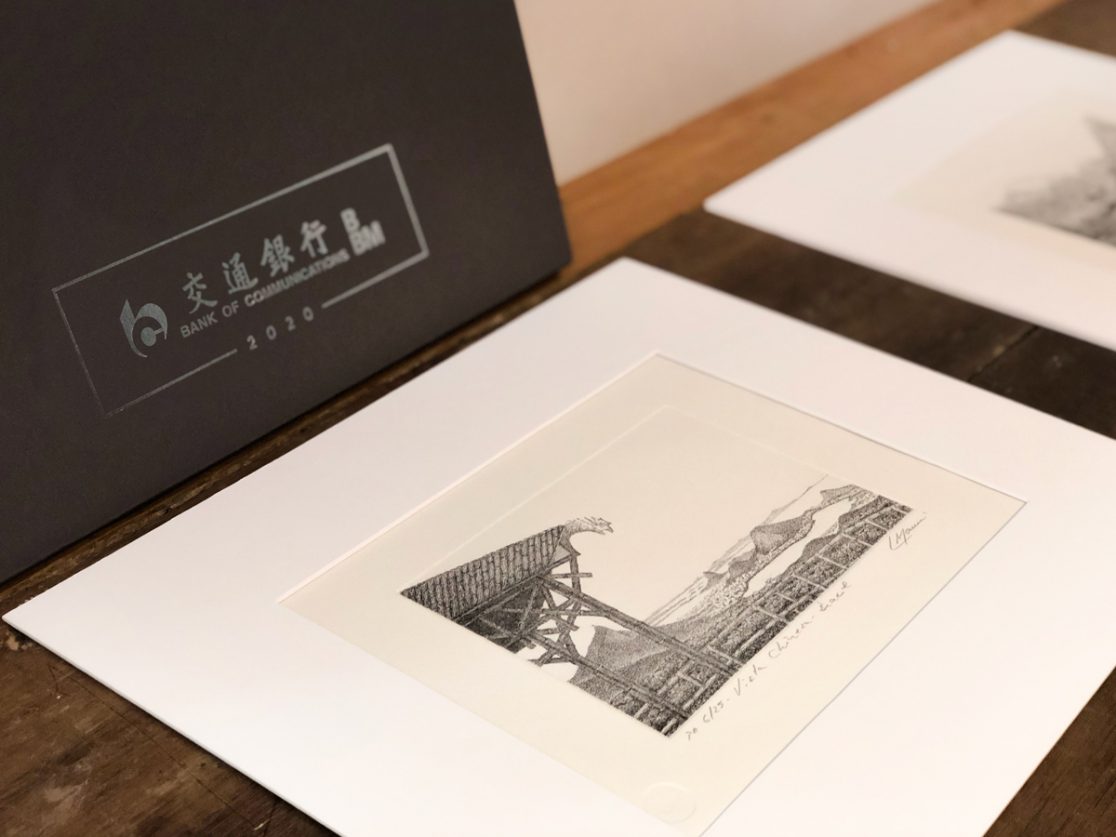 Kit personalizado composto por pasta e quatro gravuras do artista plástico Luiz Manni, acompanhados de folhetos explicativos sobre cada obra de arte com temáticas do Brasil e China – Curadoria PVDI Design.